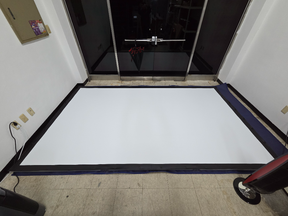 저는 120인치, 150인치, 200인치 패스트폴드 스크린을 준비했습니다.