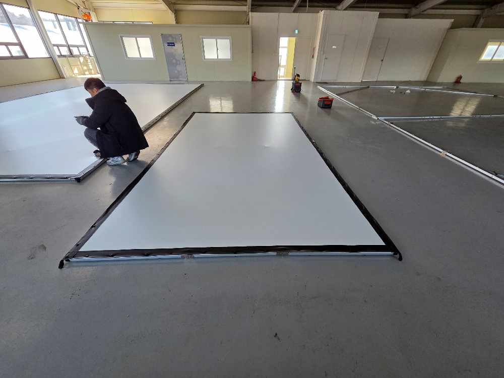 120인치, 150인치, 200인치 패스트폴드 스크린을 준비했는데요.