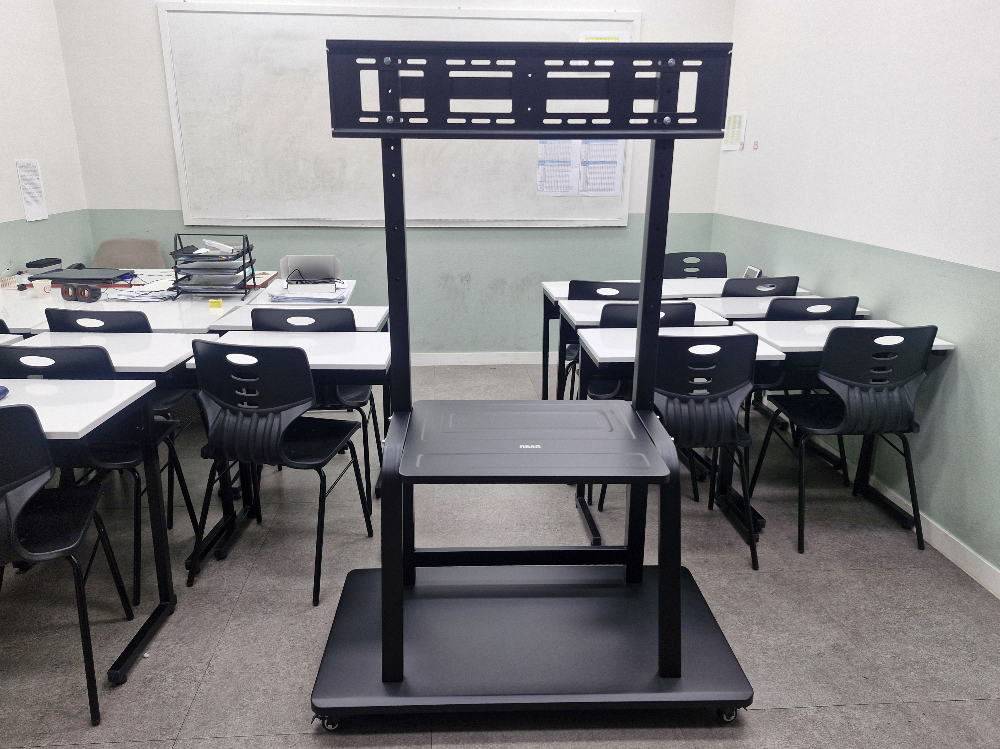 설치공간의 제약과 활용성을 위해 학원강의실에는 벽걸이형보다는 스탠드형으로 설치하는 것이 유리합니다.화이트보드와 병행하여 사용할 수 있고 필요시 다른 강의실로 이동할수도 있으니까요.