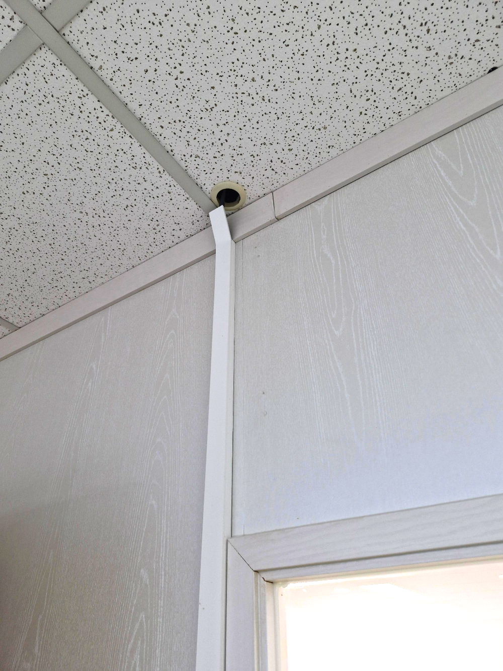 빔프로젝터와 스크린의 전원선과 HDMI케이블이 노출되는 곳은 몰딩으로 마감했습니다.
