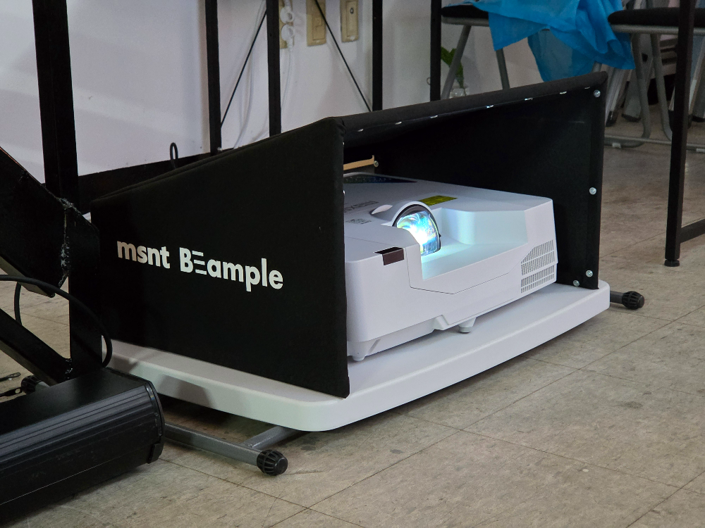 단초점 프로젝터는 스크린과 관객사이에 낮은 높이로 배치해야 하는 한계가 있는데요.